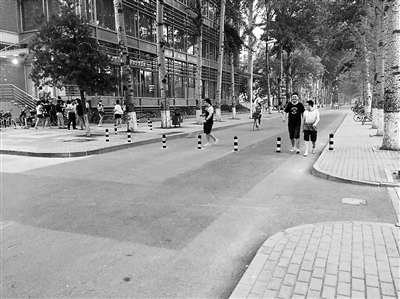 北科大校内道路大都安装了隔离桩