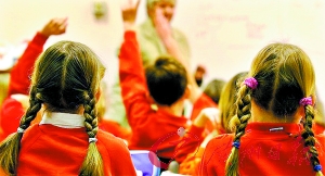 英国某小学学生在课堂上。
