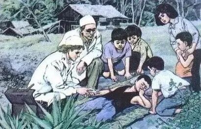 他轻轻地摇了摇头,两眼望着那捆书,用微弱的声音说:“你们要……好好学习……将来……”
