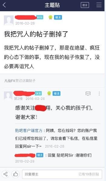 目前这位母亲已经重新找回了贴吧账号和之前的所有帖子。她在贴吧最新发贴表示:“谢谢你们,看到你们的贴子,阿姨仿佛又回到过去,回到阿翔在学校在家的时候。”
