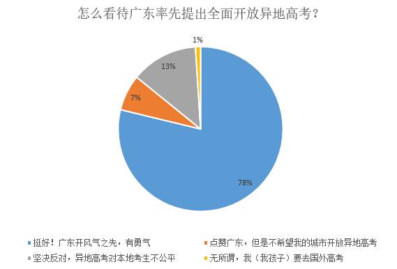 不过,在一片叫好和欢呼声中,本编却发现了一个十分矛盾的群体: 这7%的网友一方面为广东的“壮举”呐喊助威,一方面,却又悄悄希冀异地高考不要在自己的城市开放……唔,这个心态还真是复杂啊……你们对异地高考到底是支持还是不支持呢?