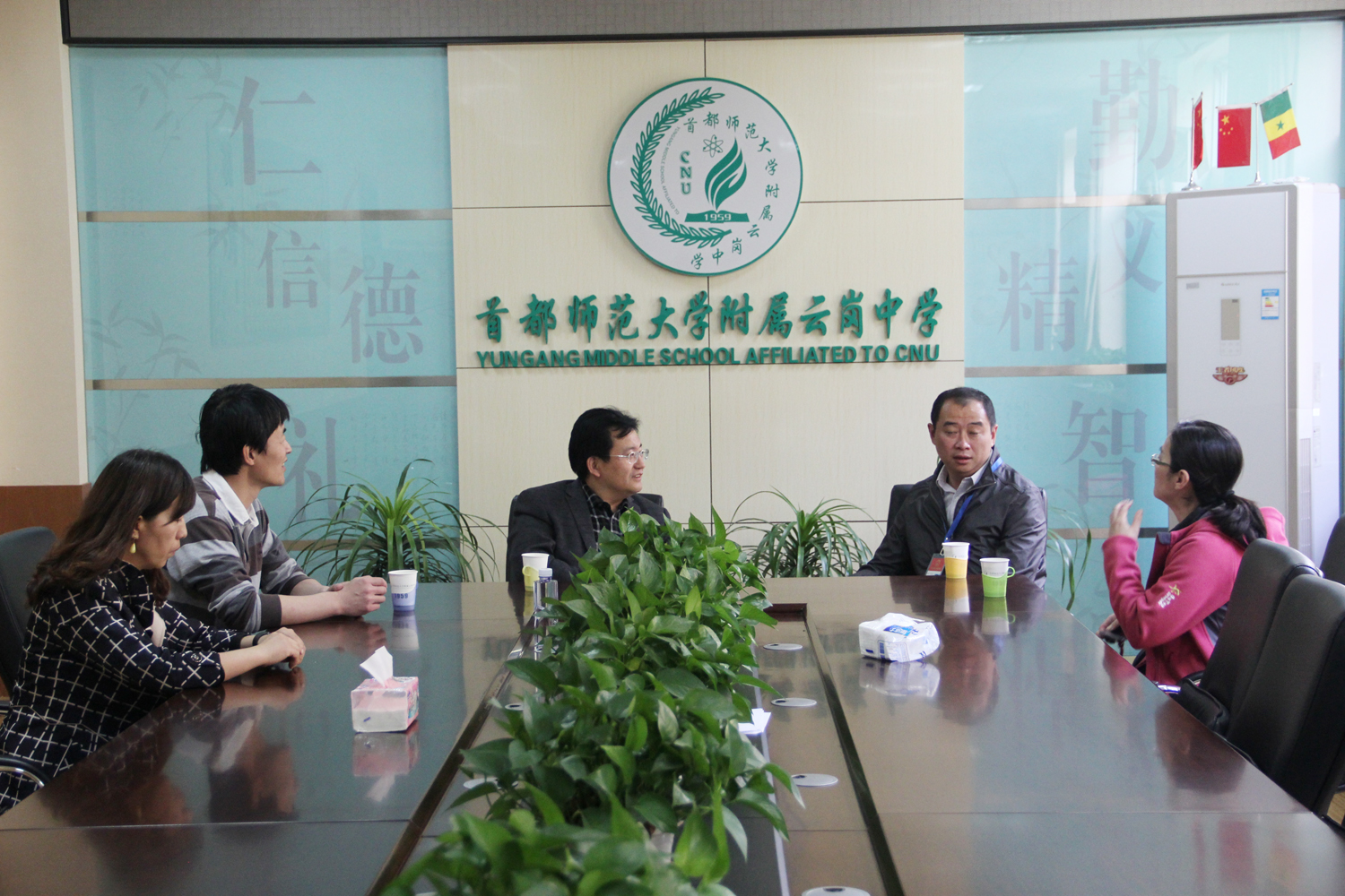 在学校办公楼二层会议室,夏远峰主任、江滔副主任与学校主要校领导进行了座谈。夏远峰主任首先感谢首师大附属云岗中学多年来给予云岗街道办事处的工作支持,肯定了学校为云岗地区教育所做的贡献及办学成果,同时表示云岗街道办事处将一如既往地支持首师大附属云岗中学的发展。随后,张进兵校长介绍了学校出租房的回收情况及存在的问题,夏主任指出:要做好妥善安排好回收相关工作,并提出云岗街道办事处将支持丰台教委及学校回收出租房的工作。