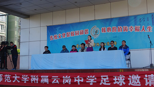 应邀参加此次邀请赛的队伍有看丹中学、卢沟桥中学、教院附属学校、卢沟桥中学和长辛店一中等五所学校。学校德育校长张冬梅校长在开幕式上向远道而来的各代表队、运动员、裁判员表示热烈的欢迎,并表示邀请赛希望能够加强与各个中学校园足球精英队的交流与学习,培养学生们团结奋进、奋勇拼搏、积极进取的精神,从而有效推进青少年足球运动在校园内的普及和发展。