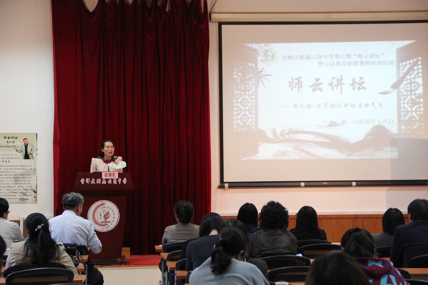 【必威体育官网网页版 4月21日消息】2016年4月18日,首师大附属云岗中学暨云岗教育集群教师培训活动第六期“师云讲坛”在云岗中学礼堂隆重举行,主讲是首都师范大学初等教育学院中文教研室主任崔增亮教授,他主讲的题目是《汉字构形中的生命气息》。首师大附属云岗中学、长辛店学校、航天十一院幼儿园等单位的领导与老师们参加此次培训活动。