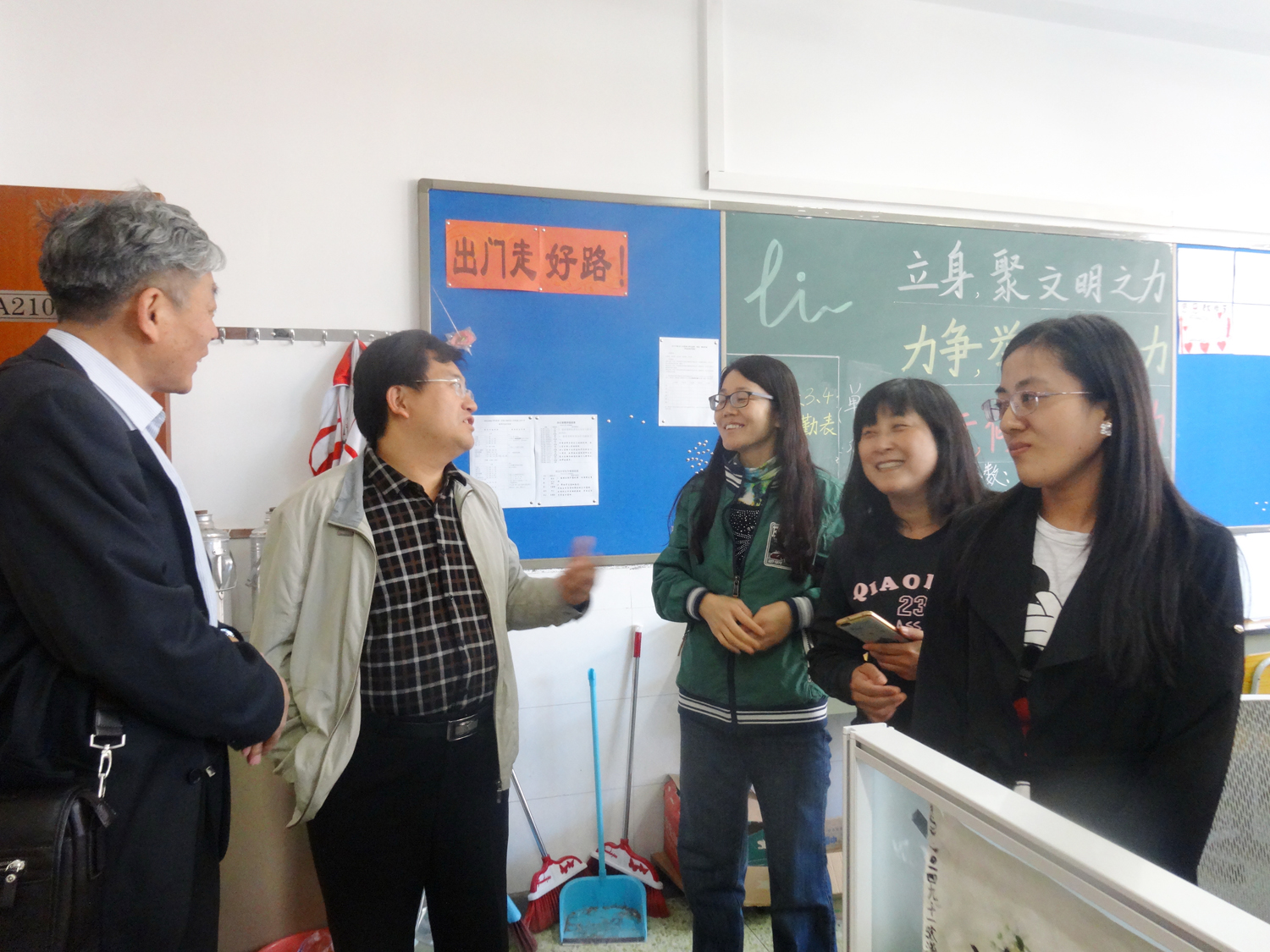 18日下午,崔增亮教授来到首师大附属云岗中学,在张进兵校长的带领下参观校园,了解了学校的校园文化建设和语文教研组开展的特色活动,还看望了正在学校见习的首师大的研究生们。