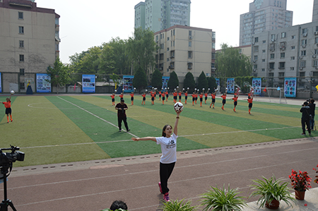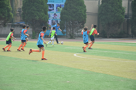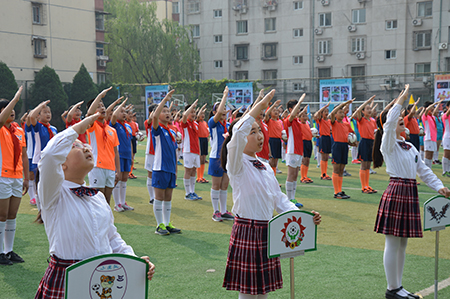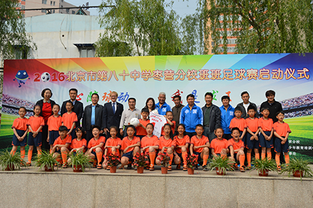 经过一年的努力,朝阳区各个学校的足球教学取得了一定的实效。为了挖掘足球好苗子、营造浓厚的足球运动氛围、提高学生参与足球运动的热情,北京市第八十中枣营分校积极组建自己的足球队,开展了丰富多彩的足球教育活动。学校特别聘请优秀的专业足球教师创编了具有学校特色、适合学校小学生年龄段身心发展并深受学生喜欢的足球操。