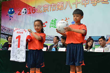【必威体育官网网页版 4月29日消息】4月29日,北京市第八十中学枣营分校“心随球动,我是球王”班班足球赛启动仪式在该校小学部隆重举行。朝阳区教育委员会主任姜继为,朝阳区社区青少年教育培训中心主任韩寅生,朝阳区体育局崔明老师,麦子店街道办事处主任丁珂、社发科科长李会应,北京加拿大国际学校校长道格拉斯·皮尔斯科特、董事曾明强,原国家队队员刘利福、路建人、吴金祥,北控燕京队队长路姜、队员王长庆等人参加了本次启动仪式。