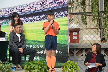 启动仪式上,朝阳区教育委员会主任姜继为及原国家队队员路建人在仪式上做了简单发言,表达了他们对足球运动的热爱以及对小球员们的深切希望。随后,展开了队员入场式、足球操展示、明星签赠、球星开球、球星解说、明星与小队员对弈等精彩环节。