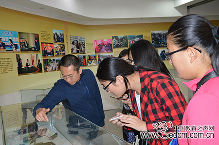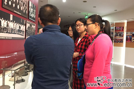 本次参观活动的第一站是中央人民广播电台台史馆。大家一边听着董斌老师热情洋溢的讲解,一边认真地观看馆中的照片和文字。其中有许多珍贵的历史资料都让在场所有人深深震撼,如党的三代领导集体对广播事业的关怀、中央人民广播电台创办初期使用的简陋设备、新中国成立以来我国广播事业的发展历程,以及以齐越老师为代表的老一辈播音员的光辉事迹。它的发展史承载了无数中国广播人的荣耀与梦想。