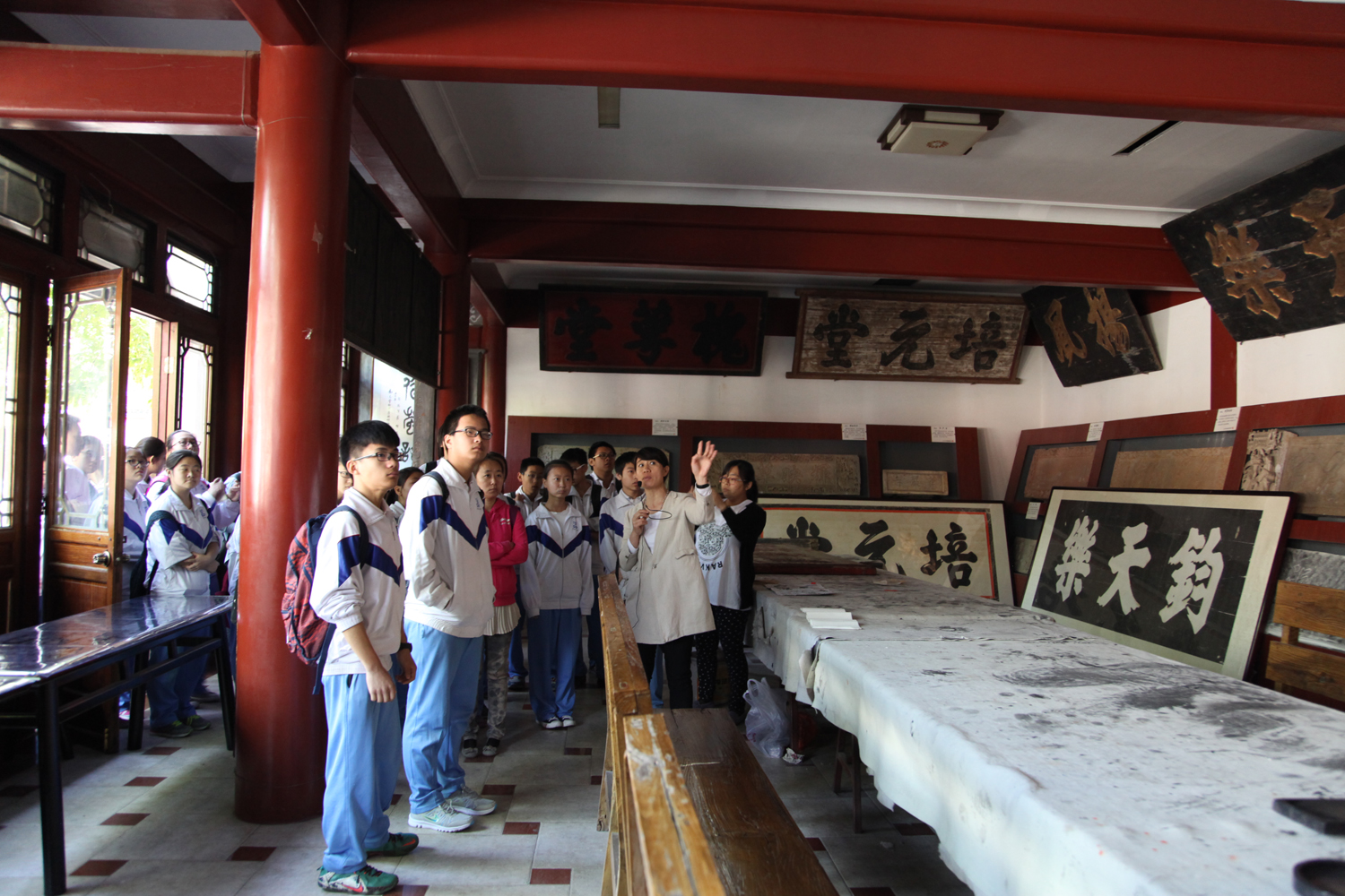上午7:00,北师大四附中全体初三学生和任课老师迎着朝阳奔赴目的地——匾额博物馆,八时左右到达了目的地,各班学生在科举匾额博物馆前合影留念,随后跟随讲解员井然有序地参观这座文化盛宴的瑰宝。北京科举匾额博物馆馆藏丰富,讲述了古代科举制度、考生如何一步步走上仕途的过程以及大量有关科举匾额的收藏意义。同学们了解了有关古代会试的考场——贡院,考生们屈身于此,尽毕生所学,寒窗苦读的积累只为这九天充分展现,希望为自己赢得好的前程。然后,同学们依次参观了秀才匾额厅、举人厅、进士厅和榜书艺术厅。接着,同学们返回序厅,亲眼看到了镇馆之宝科举门,参拜了孔子像,感慨万千。不过重要的活动才刚刚开始。