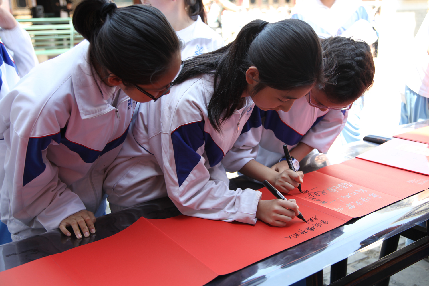 最后,同学们同主持人一起宣誓,并纷纷在毕业纪念簿上留名纪念,写下对自己的期待和加油的话,以相互激励在中考中再创辉煌。本次的誓师大会纪念意义重大,对于2016届初三毕业生来讲,是人生中难忘的回忆,“师生同心、追梦同行”,我们期待同学们在40天后的中考中取得令自己满意的成绩。今天,你以四附中为自豪,明天,四附中以你为骄傲!