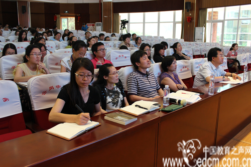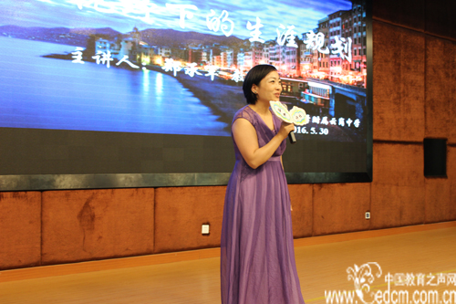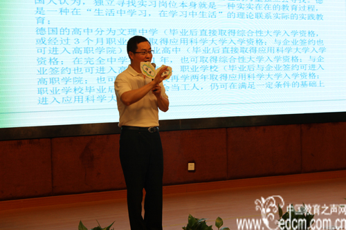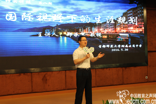 讲座中,郑教授通过目前大学生的就业困惑引出了“职业生涯规划”的概念,从职业生涯规划的时代背景、国际通行的做法、各国的经验和启示、国际生涯规划的过程及相关理论、就业与创业等几个方面开讲,结合中学老师当前的现状和心理特点,有针对的提出建议和措施。郑教授的讲座深刻全面又不失轻松活泼,通过一些名人的案例,和老师们分享各国国际经验,让他们对职业生涯教育有了更新一层的理解,并希望教师们更好地把学到的教育理念转化为教育行为。