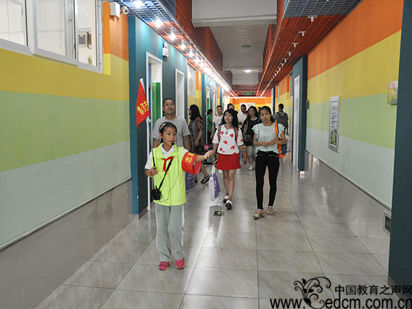 活动一开始,校园讲解志愿者们热情地和客人打招呼,并引导客人参观校园。小志愿者的讲解细致入微、生动有趣,嘉宾们不约而同的拿出手机给她们拍照。