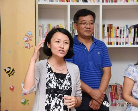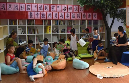 7月9日上午,在逸翠园社区“逸阅室”启动仪式前,社区亲子书屋有这样温馨的一幕。经过一年的精心筹备,在朝阳区教育委员会指导下,由朝阳社区学院主办,由青少年教育培训中心(以下简称”培训中心)承办的第一个社区亲子小书屋——逸翠园社区亲子小书屋正式对社区青少年开放。