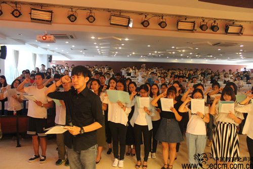 “我是一名光荣的人民教师,我宣誓:忠诚教育事业,履行教师神圣职责……为人师表,终身学习,为祖国培养合格人才,我愿奉献自己毕生的精力!”新教师铿锵有力的宣誓声标志着他们正式步入了人民教师的职业生涯。全体新教师纷纷表示,要充满爱心,不断学习,虚心求教,争取早日成长为一名优秀的人民教师,这也表明了他们的心声和奋斗的决心。