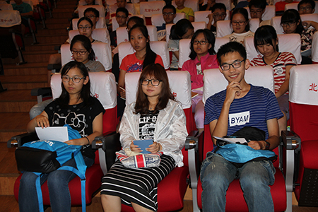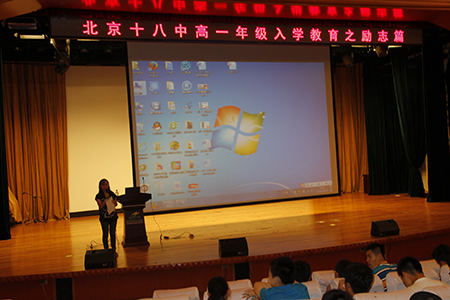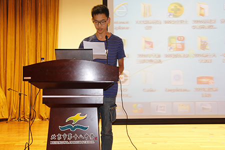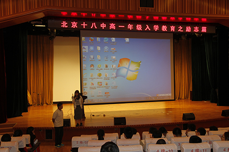 随后,三位高三毕业生围绕高中学习和生活向学弟学妹们传授他们的经验和方法。薛晨建议同学们应该尽快适应高中的生活,紧跟节奏,紧跟老师,时时调整好自己的心态。张蕊作为我校原学生会主席,反复告诫同学们一个道理:努力不一定成功,可不努力就一定不会成功,要充分安排和利用好点滴时间,好好学习,天天向上!今年刚考上首都医科大学本硕连读的焦雨青同学则更加重视学习方法,如语文读本的利用、新闻的积累、数学的一题多解和改错、经典美剧的利用等。他们的讲解给了高一新生莫大的启发和鼓舞,这让新生逐渐找到了方向、找到了目标、找到了榜样,也找到了力量!