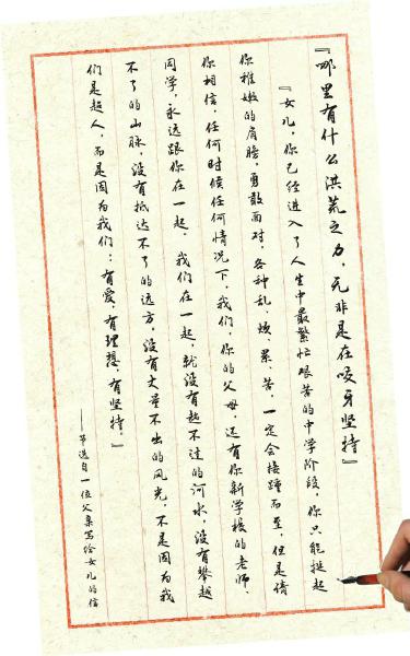 “从那天开始,女儿就要开始住校了,一周见一次。”看着曾经的小女娃娃就这样转眼长大,尽管平时跟女儿无话不谈,代女士依旧郑重提笔,用最原始的书信方式,为女儿写下注意事项,“没想到,这一写就写成了一封充满感触的信。”