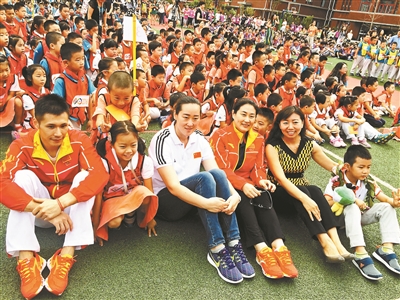 奥运金牌伉俪庞伟、杜丽与清华附小学生互动