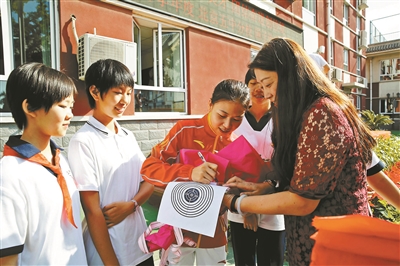 奥运冠军易思玲为五中分校师生签字留念 摄影/周良