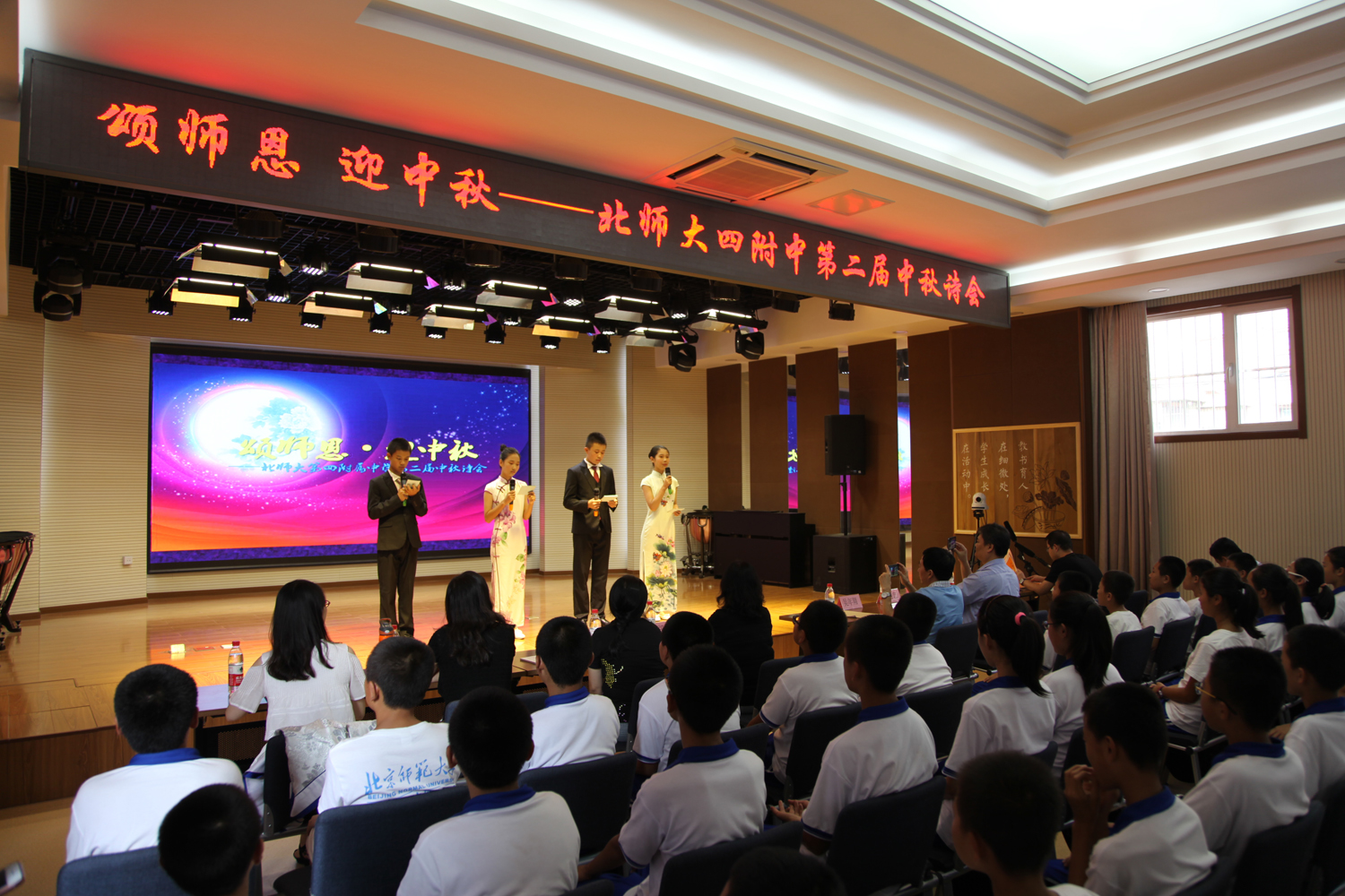 北师大四附中第二届中秋诗会落下了帷幕,一阵阵诵诗声、欢笑声,伴随着桂花香、月饼香,把四附中的校园点缀成了中秋节最美的景致。