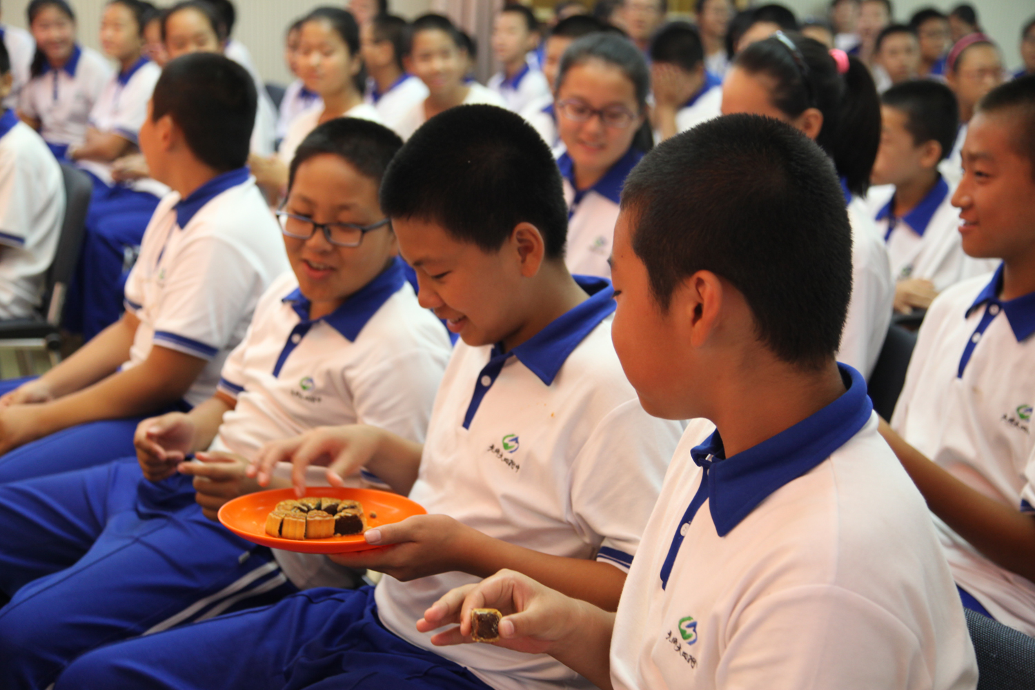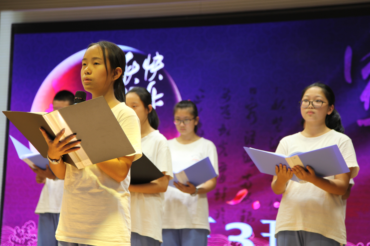 下午3时,北师大四附中合唱队的同学手捧着厚重的书简,吟唱着先民的礼乐之歌为本次中秋诗会拉开了帷幕。诗会中,各班都奉上了精心排练的节目,有初一的新生,踏着青春的旋律,唱响了《青春万岁》;有初三的学哥学姐感恩老师,深情朗诵的《献给老师》;也有用一段荡气回肠母子对话演绎着爱国情怀的《红岩魂》;还有的班级身着汉服,用最传统的调子吟诵着中国古典诗词中望月思乡的名作。节目过半,语文组的尹海燕老师还为同学们介绍了中秋节和月饼的渊源,学校领导同时为师生们送上了一盘盘香甜的月饼,诗会的现场变成了一个大家庭,欢声笑语,其乐融融。