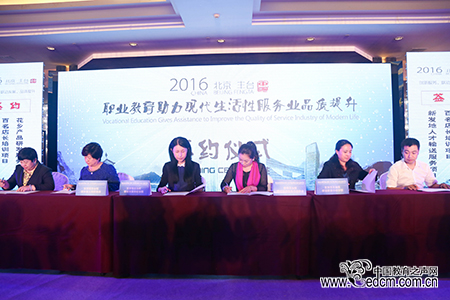 此次研讨会以创新服务、联动发展、品质提升为主题。国家宏观经济专家,南开大学校长助理、教授刘秉镰等多位专家就职业教育助力现代生活性服务业进行了主题演讲。研讨会现场还成立了丰台区现代生活性服务业教育服务专家顾问团。同时,在此次研讨会上,丰台区职业教育中心学校分别与北京市丰台区餐饮住宿服务行业协会、北京市丰台区花乡黄土岗村委会、北京市新发地宏业投资中心、北京鑫福海工贸集团签订了百名店长培训项目、花乡产品研发服务项目、新发地人才输送服务项目、品牌宣传服务等4个合作项目。未来,丰台区职业教育中心学校将分别与四方进行员工培训、产品服务、人才输送等方面合作。