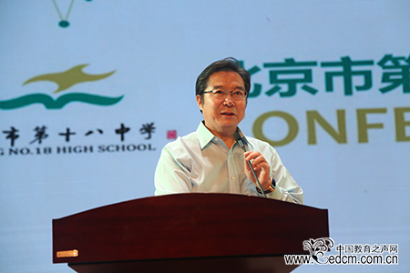 教育部教师工作司司长王定华从基础教育发展,校长成长教师成长的四个着力“立德树人、促进公平、形成合力、着力专业发展”深入解读了习总书记八一学校讲话精神。为了促进学生德智体美各方面都得到发展,一定要践行好社会主义核心价值观,号召老师做好“四个引路人”,避免德育工作的假大空;促进公平方面,特别谈到方庄教育集群就做了很好的示范,以十八中为盟主引领各个集群内学校获得发展,积累了比较好的经验,教育部也非常支持这样的教育改革与创新。这种模式形成了很好的合力,学校不是孤立办学,与其它学校、社区、社会机构充分合作,汲取他们的营养获得他们的帮助,在力所能及的范围内给社会提供方便,服务区域经济文化发展;着力专业发展方面,他分享号召当地政府要满腔热情地关心教师队伍,以便形成师德高尚、业务精湛、结构合理、充满活力的高素质专业化队伍,特别在十三五期间,提高教育质量、提升教育品质,最主要的抓手就是校长队伍和教师队伍的建设,要形成更多好老师的群体。教育部的层面希望涌现更多的典型,发现典型、甄别典型、培育典型、推广典型,在教育改革和发展过程中,在教师发展过程中创造出更多新的和好的经验。