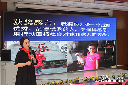 王薇华老师是积极心理学专家、心理学作家,她著有《幸福法则》、《心理健康法则》、《公民幸福手册》等书。本次讲座以“孝心、爱心、感恩心——提升少年幸福力”为主题,王薇华老师的语言幽默风趣,讲座内容旁征博引,通过生动鲜活的事例阐述了中华传统孝道文化,赢得了孩子们的阵阵掌声。