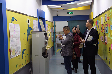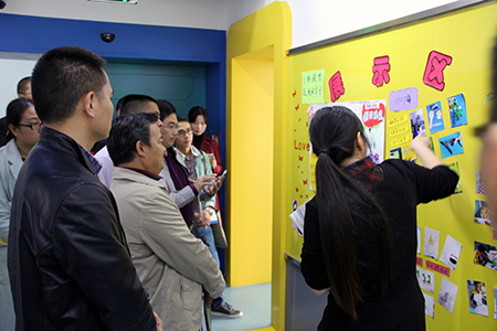 接着,在校领导的陪同下,高校长一行13人参观了学校的多功能厅和未来实验室等。参观过程中,来宾们被浓厚的校园文化氛围和未来实验室的独特设计所吸引,在未来实验室的走廊里,经老师们的悉心策划和学生们的动手操作,一块块个性鲜明、主题突出、精彩纷呈的校园文化墙闪亮呈现在未来实验室的楼道走廊中,编织成一条五彩斑斓的文化长廊,那精美的图画、漂亮的书法、绚丽的色彩、丰富的内容······成为未来实验室的一道亮丽风景线,令不少来宾驻足观赏,流连忘返。他们纷纷对学校优美整洁的育人环境及校园散发出浓郁的人文氛围表示赞赏,对学校鲜明的办学特色给予了高度评价和一致认可。