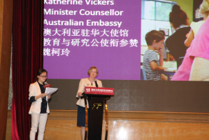 12月7日上午9点,中国联合国教科文组织全国委员会秘书长杜越、联合国教科文组织驻华代表处主任欧敏行在大会上进行开幕致辞,澳大利亚驻华大使馆公使衔参赞魏柯玲以“树立亚太地区的在线教育核心”为主题进行了演讲,伟东云教育集团董事长王端瑞分享了”共享教育资源,传承人类文明”的教育理念,得到了与会人员的热烈反响。
