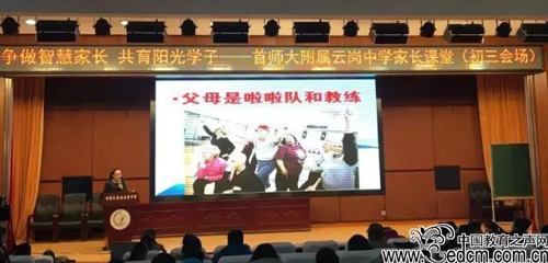 首师大附属云岗中学的家长学校大讲堂不仅面对学校家长开放,还向集群校的家长开放,学校力争使家长学校工作的开展更有信心,更有决心,更有目标,共同为提升云岗地区家长的教育水平而努力,共同创造一个和谐的地区教育氛围,为孩子的成长助力,为学生的幸福奠基。