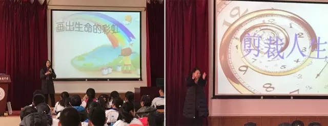 金凡婷老师为高二年级学生带来了《画出你的生命彩虹》和《剪裁人生》两节课程。主题是树立学生生涯规划意识、教会学生合理利用时间的方法。金老师也是用了游戏互动的方式,让学生在体验中感悟主题,唤醒自我成长意识。