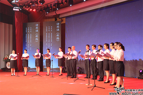《创新发展》以沙画的形式表达了职成教育集团的未来发展蓝图,情景剧《职成人家》以生动有趣的形式,通过一个普通家庭讲述了职成教育的推动者和受益者的故事,体现了丰台区职成教育集团的功能定位。诗朗诵《新路》展现了可亲可敬的职成人脚步铿锵、不畏艰险、豪情万丈、奋勇开拓,他们跻身于经济发展的洪流之中,融合资源,凝聚智慧,彰显职成教育的品质与梦想。