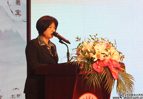 教育部职成司城乡社会教育处刘英处长发表讲话。面对新的形式、新的要求,以及前所未有的挑战,刘英处长提出了期冀,希望集团坚持面向市场、服务发展、促进就业的办学方向,促进集团办学的转型,同时,希望集团坚持创新与校企合作,改革职业教育教学,加强专业建设和课程改革,做到专业和岗位的对接,构建终身教育体系。她相信,丰台区职业与成人教育集团将大有作为。