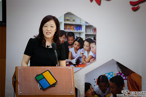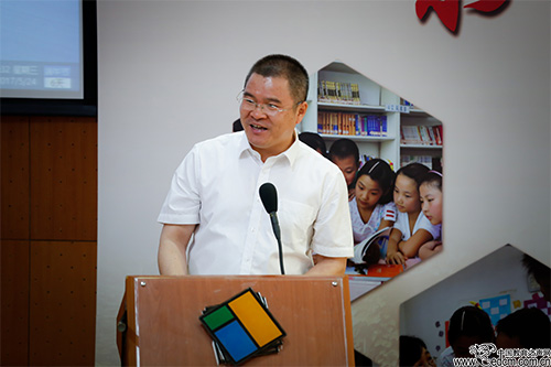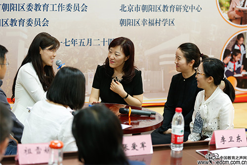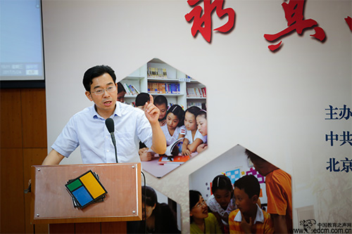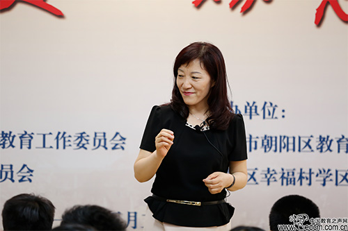 朝阳区教工委副书记刘丽彬致辞,他重点对“双名工程”进行了解读。“双名工程”即朝阳区名校长、名教师工程,自2004年实施以来,培训教师研究能力和学术素养。迄今为止,“双名工程”已推动朝阳教育快速发展,助力教师快速成长,并将引领“十三五”时期朝阳教育强区建设。刘丽彬书记说:“让优秀的人才当老师,让现有的老师更优秀,才能加快人才队伍优化建设。”