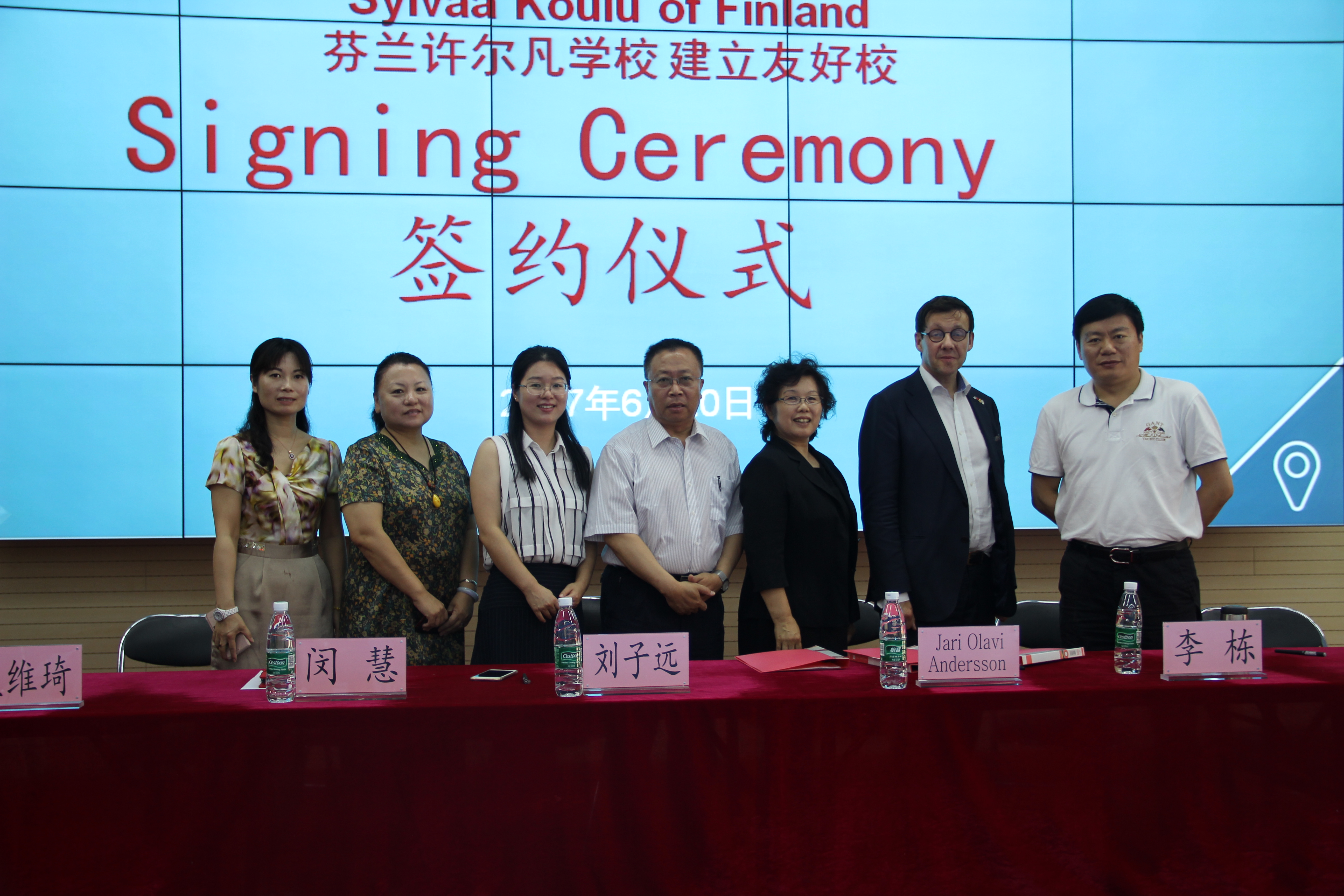 下午1:30,刘子远校长与亚力校长、中芬教育交流协会中心主席、中国教科院田辉副所长三方签署了《建立友好学校协议书》,双方在中国教科院国际与比较教育研究所中芬教育创新研究中心支持下建立友好校,双方共同承诺今后将在课程交流、互访、教师培训等方面开展一系列活动,促进交流与学习。