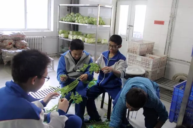 高一同学:往往在班里调皮的同学,在食堂体验择菜的时候,给人一种焕然一新的感觉,整个人仿佛成熟了,肩上有了一份责任和担当。择油菜对于同学们来说是个微不足道的工作,但真的做起来时却感到中午饭的来之不易。