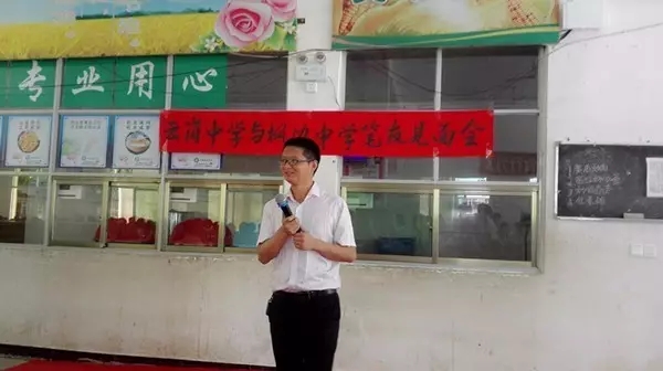 笔友见面会在枫边中学的食堂进行,在枫边中学老师们的安排下,大家都找到了和自己通信的好朋友,虽然有多次通信的基础,刚刚见面,大家还是有些小拘谨,但是没过多久,孩子们就熟悉起来。为了增进学生之间的了解,枫边中学在食堂组织了联欢会,蔡立平校长为见面会致辞,蔡校长首先对远道而来的云岗中学的师生们表示了欢迎,同时表达了希望两校学生深入交流的期望,祝愿本次交流活动圆满成功。蔡校长讲话之后,两校孩子各展才艺,开始联欢,歌曲演唱、朗诵、舞蹈、快板、京剧、乐器演奏…….形式丰富,条件虽然艰苦,大家的表演却非常投入。
