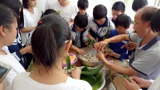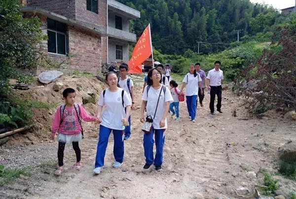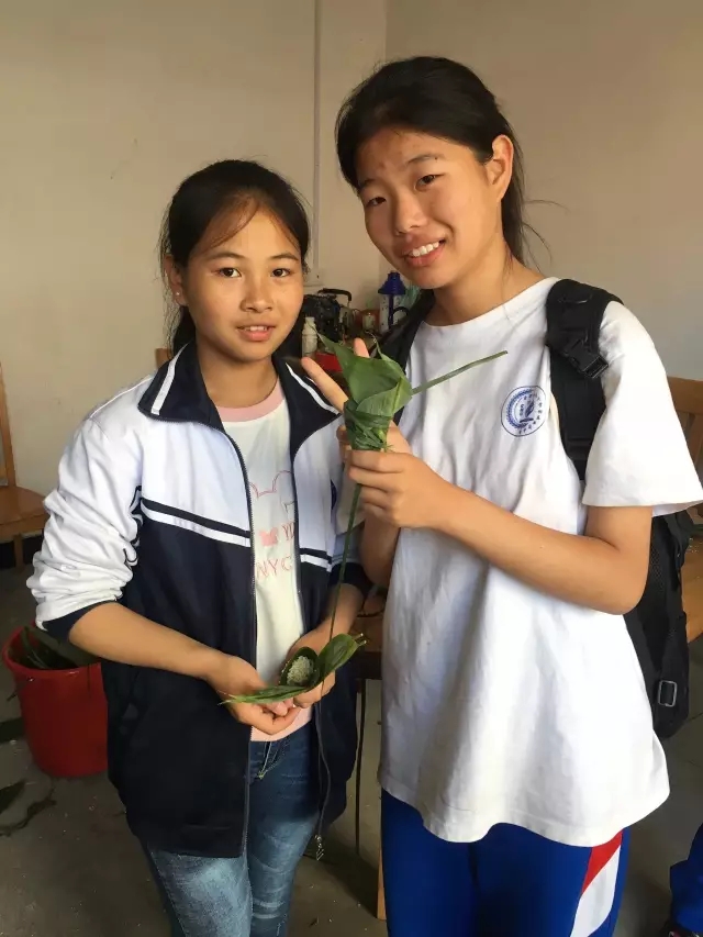 午饭后,云岗中学的学生开始了另一种体验,他们在伙伴和老师的带领下,分组走进了附近的六个家庭。六个家庭热情接待了来自首都的客人们。在六个家庭里,每个小组的体验活动都各不相同:有的小组学习包粽子,有的小组来到田园参观,有的小组参观枫边特产山茶树。特别值得一提的是第一小组的同学,在蔡校长和几位老师的带领下,大家翻山越岭,来到枫边乡的立新教学点。立新教学点的肖老师带着三个二年级的小学生坚持工作学习,三个可爱的孩子对待学习的认真态度和面对困难毫不退缩的乐观精神对第一组的同学触动很大。放学时间到了,云岗中学的几个学生牵着立新教学点的三个小姑娘的手,一起走上了回家的山路。