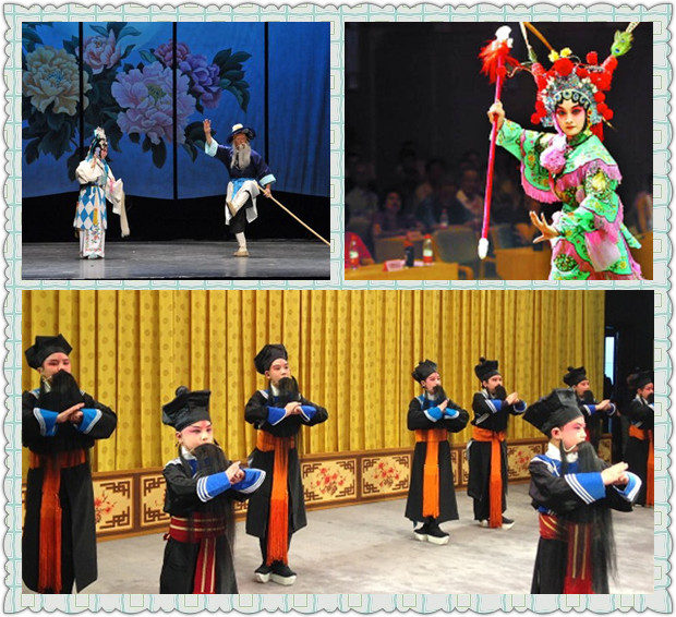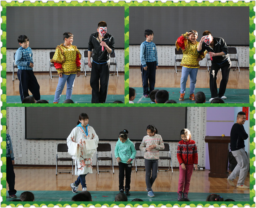 普及京剧扮相常识,能让学生分辨出几个重要的角色脸谱、扮相,开展互动游戏来识别或现场体验脸谱真人秀。