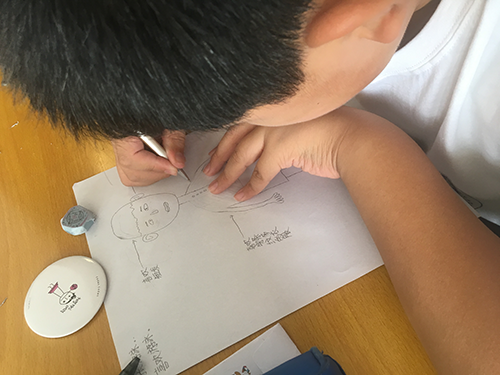 本课对自我进行一次外貌探索,每个学生手拿一块镜子,从头大脚,细心的观察自己的头发、眼睛、鼻子、嘴巴……并给自己画一幅自画像。在自画像旁边罗列出20个关于“我”的特点。在这个环节中,学生对自己外貌特长有了清晰的认识,认识到自己是独一无二的,也有不少学生还对自己有了新的发现(比如:有些学生发现自己变黑了,变高了,脸变红了……)。在自画像完成后,孩子们一一上讲台展示自己的自画像,这不仅能锻炼孩子们的胆量,也可以锻炼他们的表达能力,与此同时,也能让同学们更好的彼此了解。