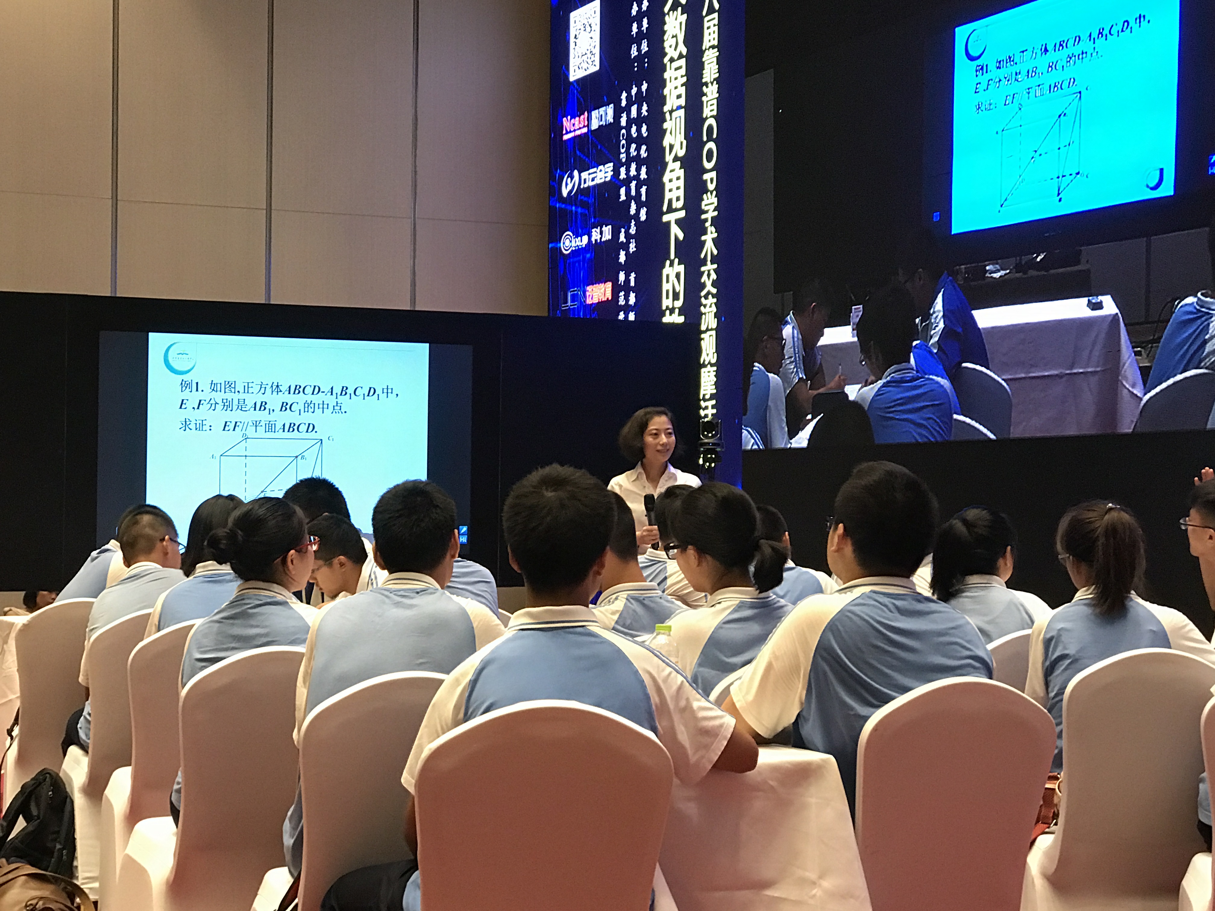 北京市第十八中学教育集团自2014年加入COP项目以来,先后有26位教师分两批参与COP的学习培训。四年来,教师的研讨实践取得了丰硕的成果,并涌现了诸多优秀教师。本次观摩活动,十八中教育集团共五位教师参加,其中方庄校区高二年级数学黄蔚教师代表集团进行了现场课展示。展示以“一个线面关系的题目为背景”,黄老师用她亲切的教态、严谨的教学风格,穿针引线般地完成了知识、方法的梳理,并不间断的挖掘学生的学习困难,进行有效方法的指导。最重要的是教师站在育人的高度,教导学生独立、善思、勇敢。受到与会教师的一致好评。