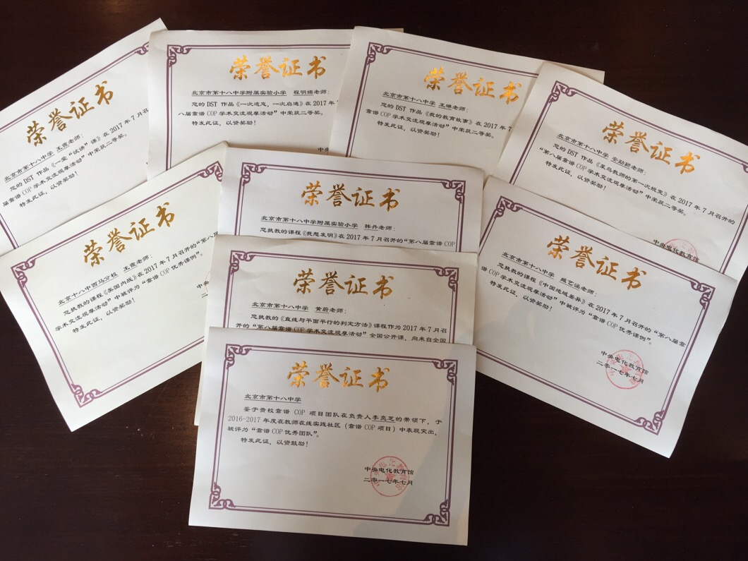 DST作品获奖:十八中方庄校区安勐颖、十八中左安门校区王琳、十八中附小程明媚、十八中西马校区王霞