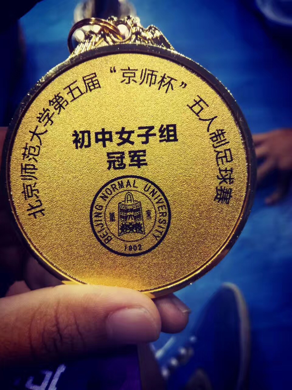 初中女足获得本次五人制足球赛冠军,康玺老师荣获“最佳教练员”称号,乔琪同学喜获“最佳球员”称号。
