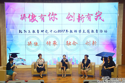 随着中高考改革的深入,教研中心的工作重点也将深入其中并取得了取得显著成绩,这离不开教研员们付出的心血。在2017年中、高考取得优异成绩的优秀学科领头人王文英老师、张春丽老师、商晓绪老师和曹卫东老师与观众进行了分享。王文英老师认为,因为有了全体朝阳数学教育人的团队努力才有出色的高考成绩;教研员带领团队梳理北京地区16年来的模拟题,提炼出核心素养与重要题型,大大帮助了学生备考;而正是命题团队的高度团结、群策群力,才能找到学生的不足,寻找弥补途径。张春丽老师表示高考物理成绩突出与全体高三物理教研员的奉献是分不开的,要与同事一起,将真心、真情尽情挥洒在教研活动中。商晓绪老师感谢了初中化学教研组以及多名教师的关爱与帮助,她相信自己的“执着”就是“坚守和卓越”,特别感谢家人的理解与无私支持。而曹卫东老师认为做好教研的关键是“安静”:“安”是安心地干一件事,投入地搞好历史学科教研;“静”则指“理性”,既对高考的热情固然重要,但也要保有一份理性。