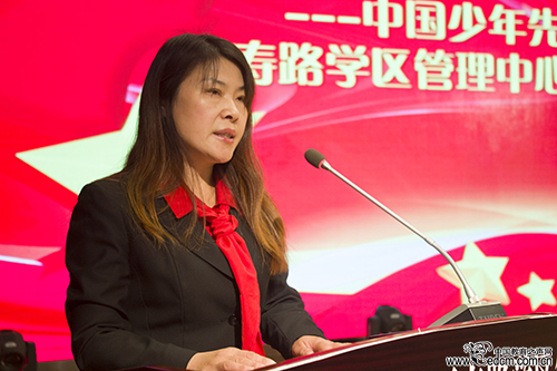 万寿路学区管理中心主任程莉致开幕辞,她号召队员们牢记、践行习总书记提出的“记住要求、心有榜样、从小做起、接受帮助”十六字要求,鼓励辅导员们团结协作、积极进取。