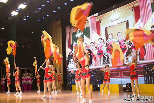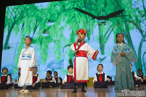 建华实验学校以合唱、表演、朗诵的串烧形式,将传承传统文化和与时俱进、自主创新完美结合。