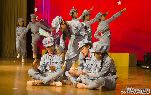 育英学校从西柏坡走来,作为一所具有红色历史的学校代表,革命历史题材的舞蹈《马背上的摇篮》讲述了长征时期小八路军的生活状态。
