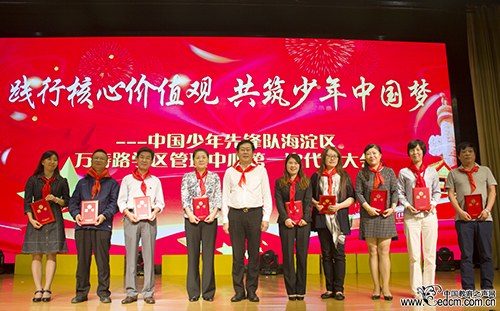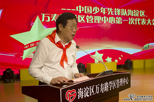 海淀区教工委副书记、区督导室主任乔健讲话,他强调,少先队组织肩负着党赋予的教育、引导少年儿童的光荣任务,各级少先队组织要用社会主义核心价值体系团结教育少年儿童,引导红领巾永远跟党走中国特色社会主义道路。