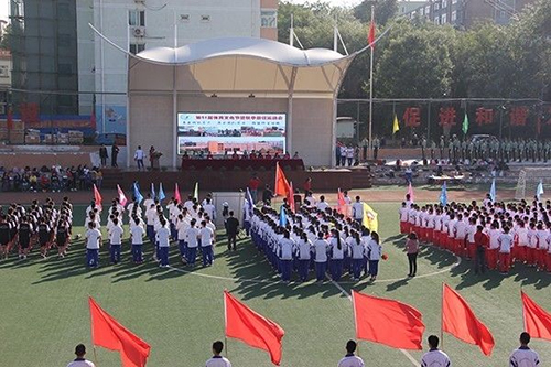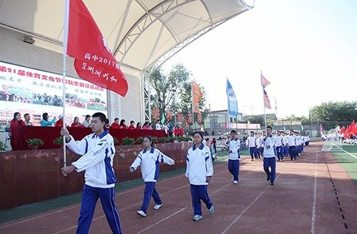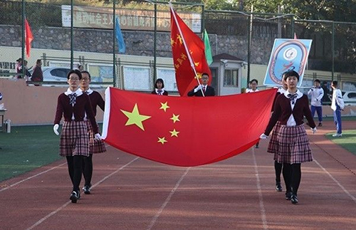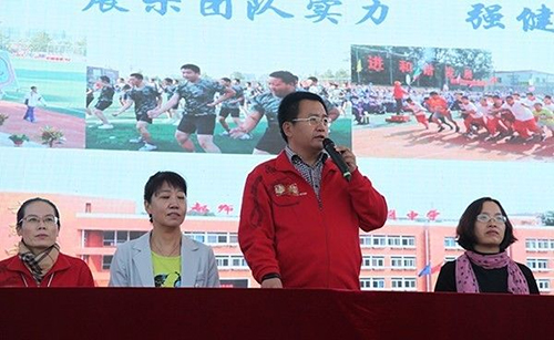 在升旗仪式之后,大会主席、首师大附属云岗中学张进兵校长宣布“首都师范大学附属云岗中学第21届体育文化节暨秋季田径运动会开幕”。